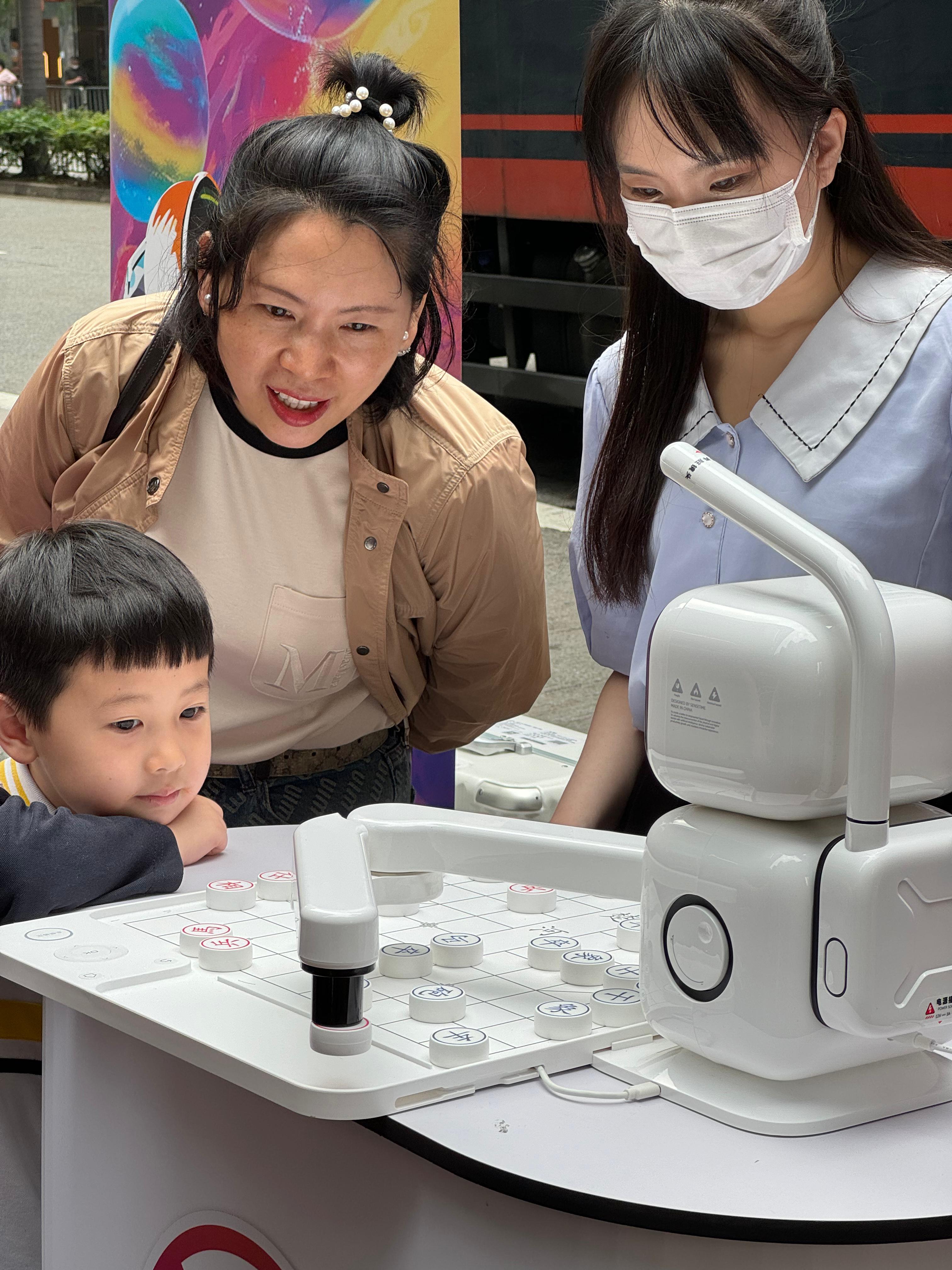 Artificial intelligence Chinese chess, AI international chess robot, green screen photography technology, virtual reality experience, current conductor class, understanding China's aerospace, AI renovating old photo, programming robots
